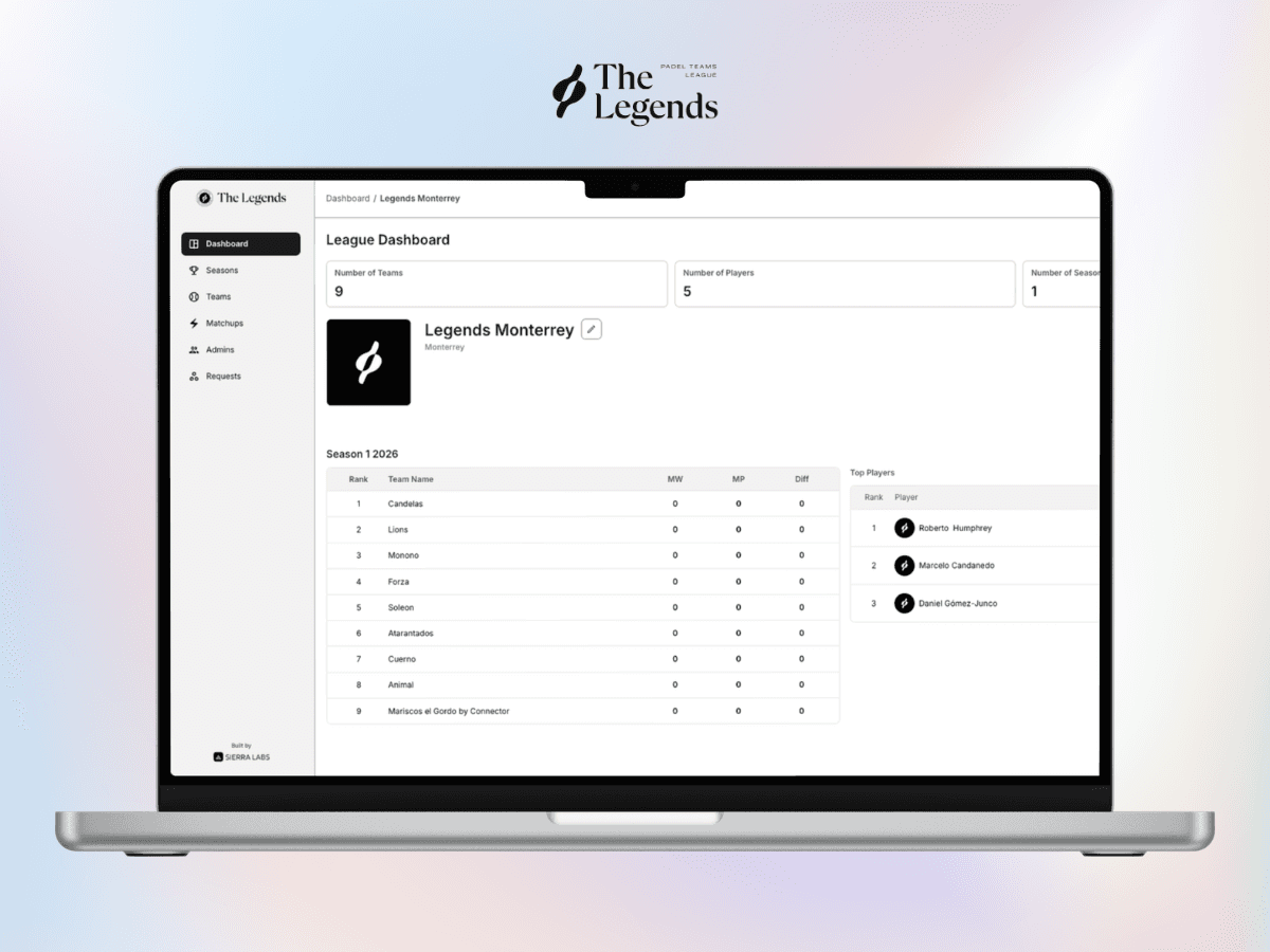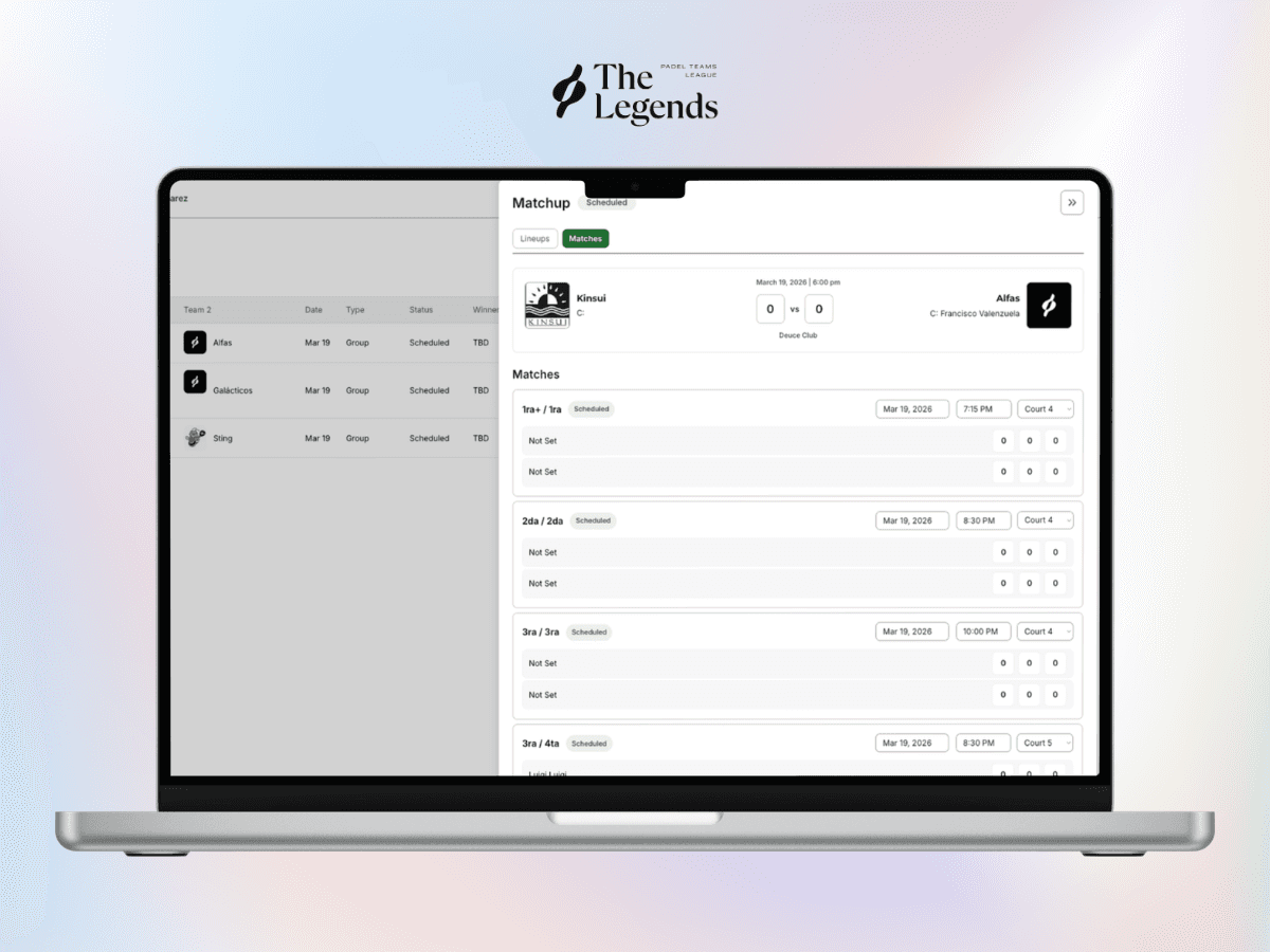The Legends is Mexico's pioneering padel league organization and they were running entirely on spreadsheets and WhatsApp. 3 cities. Dozens of teams. Hundreds of players. All managed manually. Now with their new app: • Organizers set up an entire league in minutes, not days. • Players join their team, track their progress and get notifications — all in one place. • Fans follow results, stats and news in real time. They now position themselves as a truly professional operation that attracts more players and audience, creates exciting opportunities for partners and sponsors and have a platform ready to scale to new cities and even internationally.